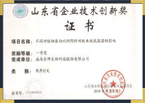 获得“威海市农业产业化重点龙头企业”、“国家知识产权优势企业”、“山东省知识产权示范企业”、“山东省创新驱动发展能力百强企业”、“自主创新十佳企业”、“纳税明星企业”等荣誉称号。